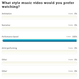 In terms of audience feedback, initially, questionnaires were devised, for example the poll I created, asking the style of music video the audience preferred. Audience feedback is integral within the media industry, regarding film production as ultimately these will be the people viewing the product and therefore I made sure I obtained as much as possible during both research, planning, construction and evaluation stages. From the poll, I discovered that the audience preferred a performance based video, evidently a key aspect of my film. Had I not had this feedback, I may have opted for a different style of video and not pushed the idea of not having a narrative storyline for my music video.